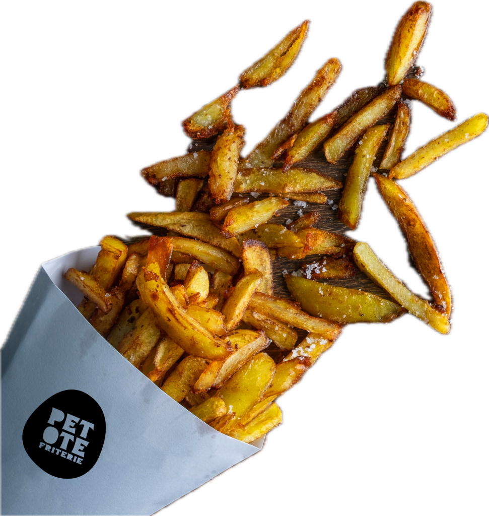 Les patates bio que nous utilisons sont cultivées à moins de 10 km de la friterie à la ferme du tri-al-mé. Elles sont ensuite épluchées et coupées par nos soins pour finir avec une cuisson traditionnelles !