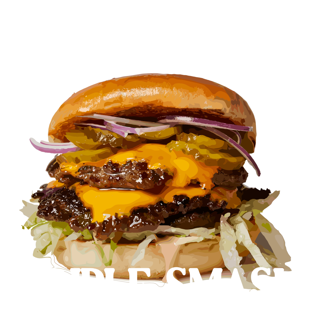 3 viandes smashées de 75gr de Black Angus de Befurn🇧🇪, pain bun brioché, cheddar hollandais, sauce maison, salade, tomate & ognon rouge